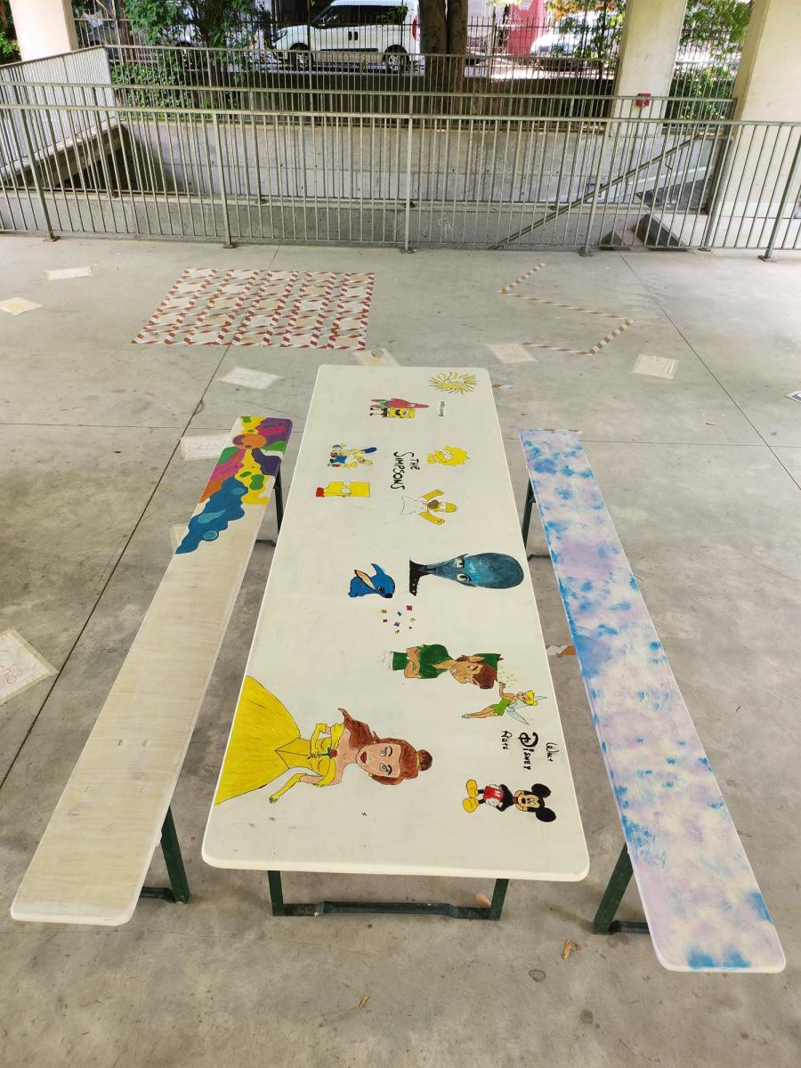 Hier sind einige Bilder von einem schönen Projekt, das eine unserer Mitarbeiterinnen zusammen mit verschiedenen Jungs und Mädchen durchgeführt hat. Gemeinsam setzen sie ihre kreativen Talente in die Praxis um und renovieren Tische, die nun unseren Innenhof verschönern!