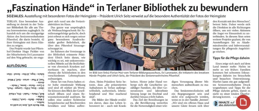 Am 07.05.2024 ist folgender Artikel in der Tageszeitung Dolomiten erschienen: