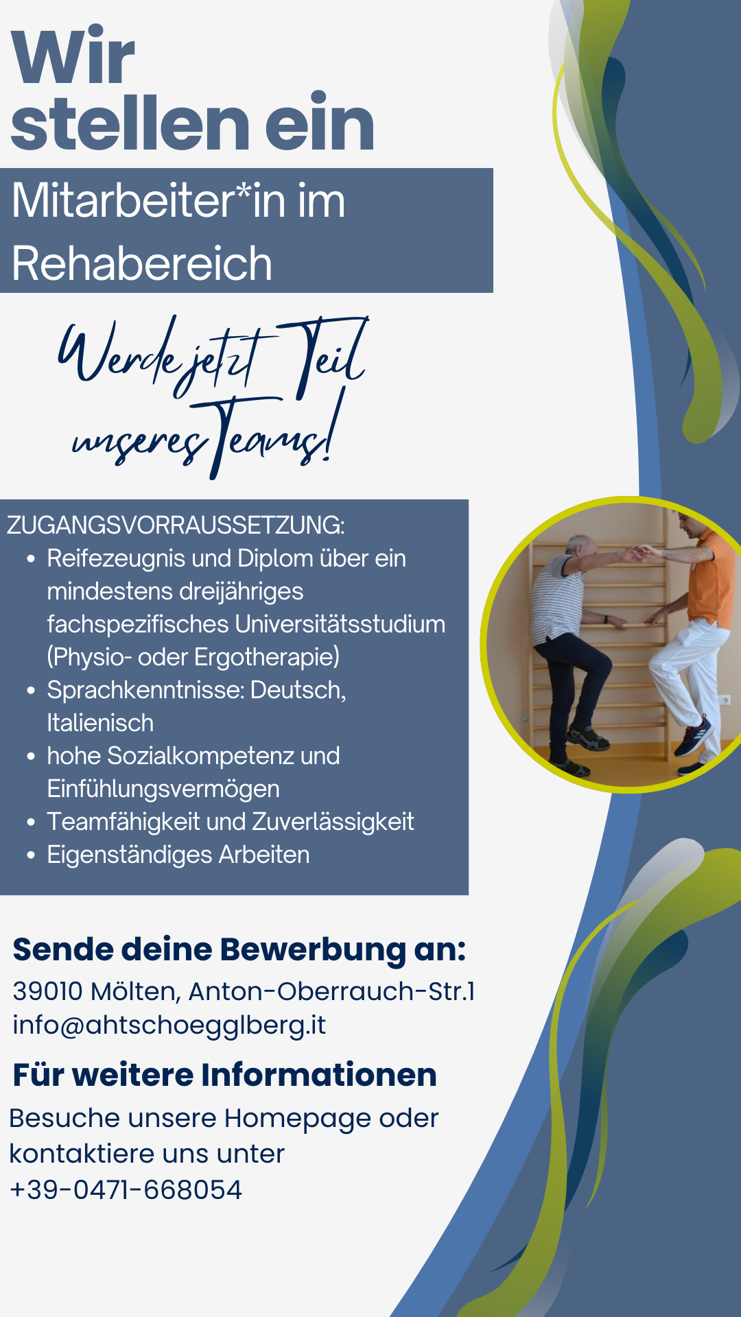 Mitarbeiter Mitarbeiterin für den Rehabereich gesucht