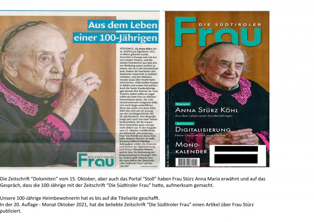 Unsere 100-Jährige HeimbewohnerIn hat es bis auf die Titelseite geschafft