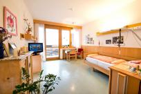 Ogni camera dispone inoltre di allacciamento per la televisione. È anche possibile arredare la camera con oggetti personali. Ogni armadio contiene una cassaforte chiudibile. Un comodo angolo con poltrona vicino alla finestra permette all’ospite di intrattenersi indisturbato in camera con i suoi visitatori.